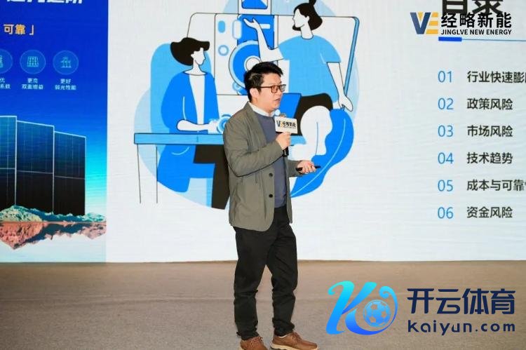 经略新能特约驳倒员、《策哥论光伏》主持东说念主胡志强发表了题为《光伏行业风险照看》的演讲。现时光伏行业政策风险主要体当今消纳与并网、电价政策及地方限制等方面;阛阓风险则包括阛阓需求变动、价钱剧烈波动以及大平台对中小装配商的挤压。电站风险,来自于施工不妥和天然灾害等。此外,他预测BIPV、储能、汇集汇流将成为光伏电站开发的发展趋势。