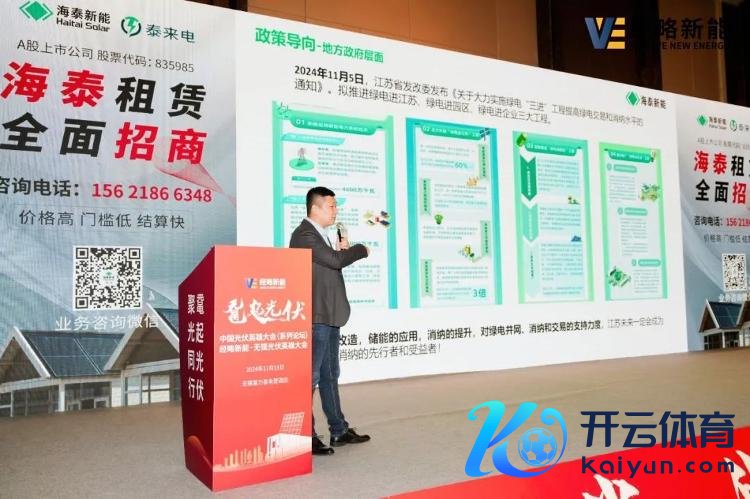 唐山海泰新能科技股份有限公司区域副总司理张杰发表了题为《浅谈新局面下的散播式光伏居品》的演讲。海泰新能驻足技能更始,以品性为基石,打造“泰回电”户用租借居品,可愚弄于平屋顶、庭院阳光棚、斜屋顶、双面坡、阳光等更全场景的决策,同期在价钱政策、资金保险、工程结算及运维设立方面具备竞争上风。目下,已在华中、华东、华南、西南等地全面张开招商活动。