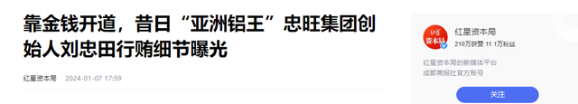 2024-01-07 红星老本局 靠钞票开谈,昔日“亚洲铝王”忠旺集团首创东谈主刘忠田贿赂细节曝光