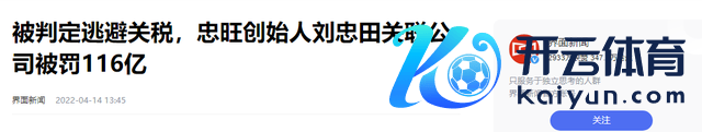 2022-04-14 界面新闻 被判定走避关税,忠旺首创东谈主刘忠田琢磨公司被罚116亿