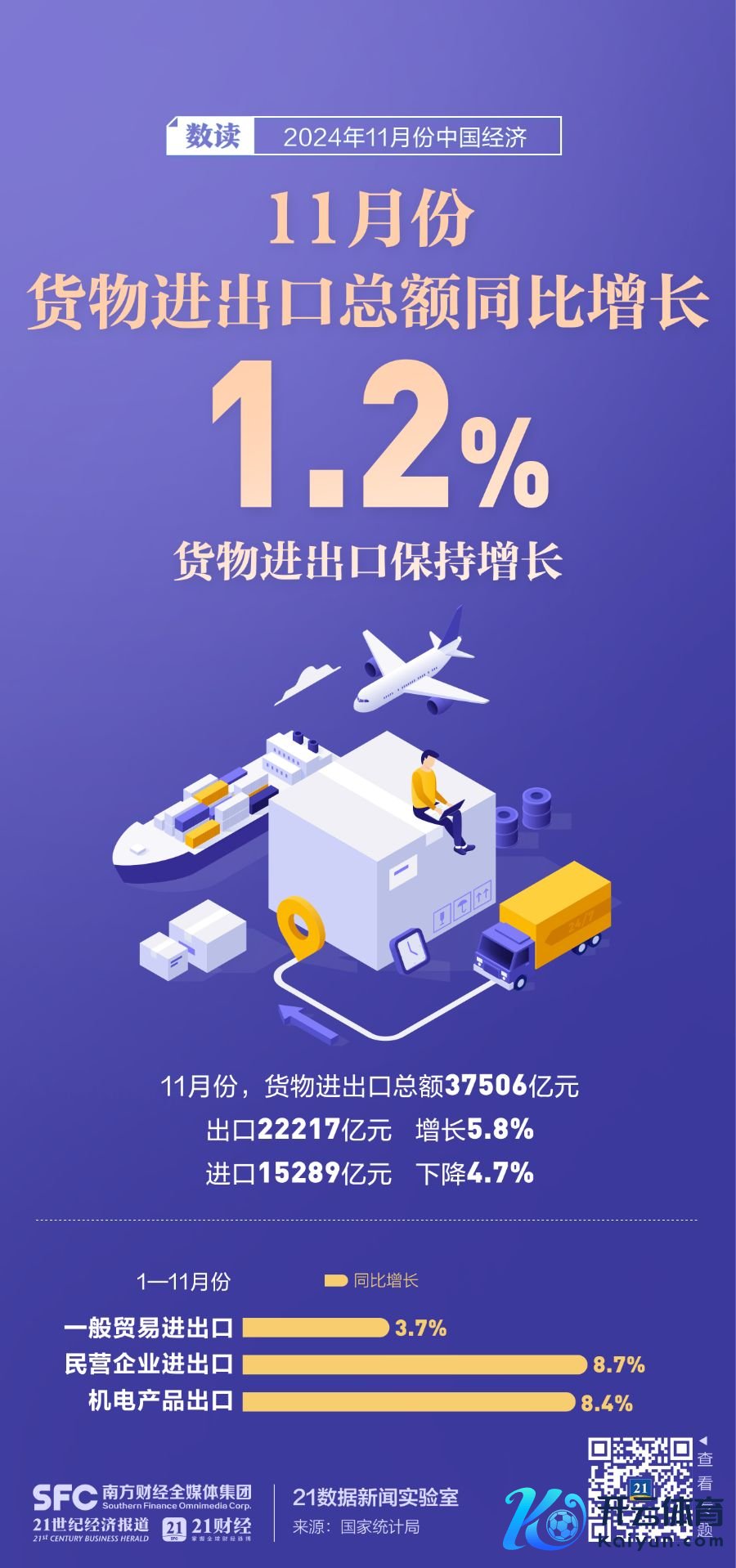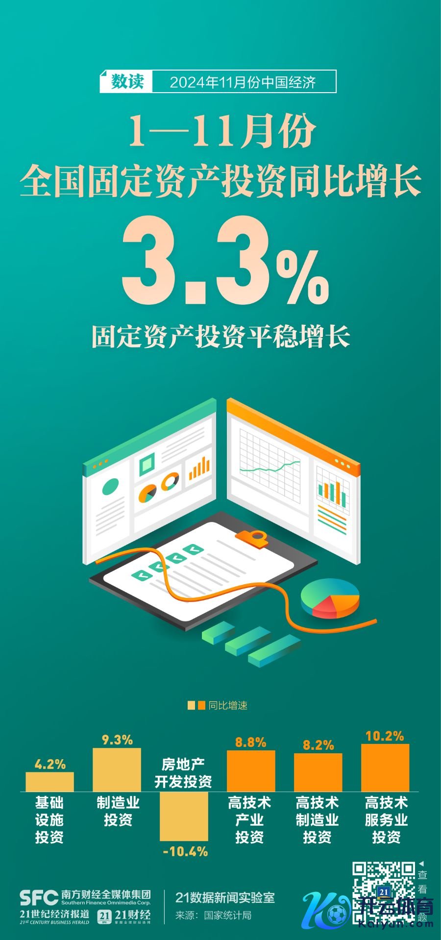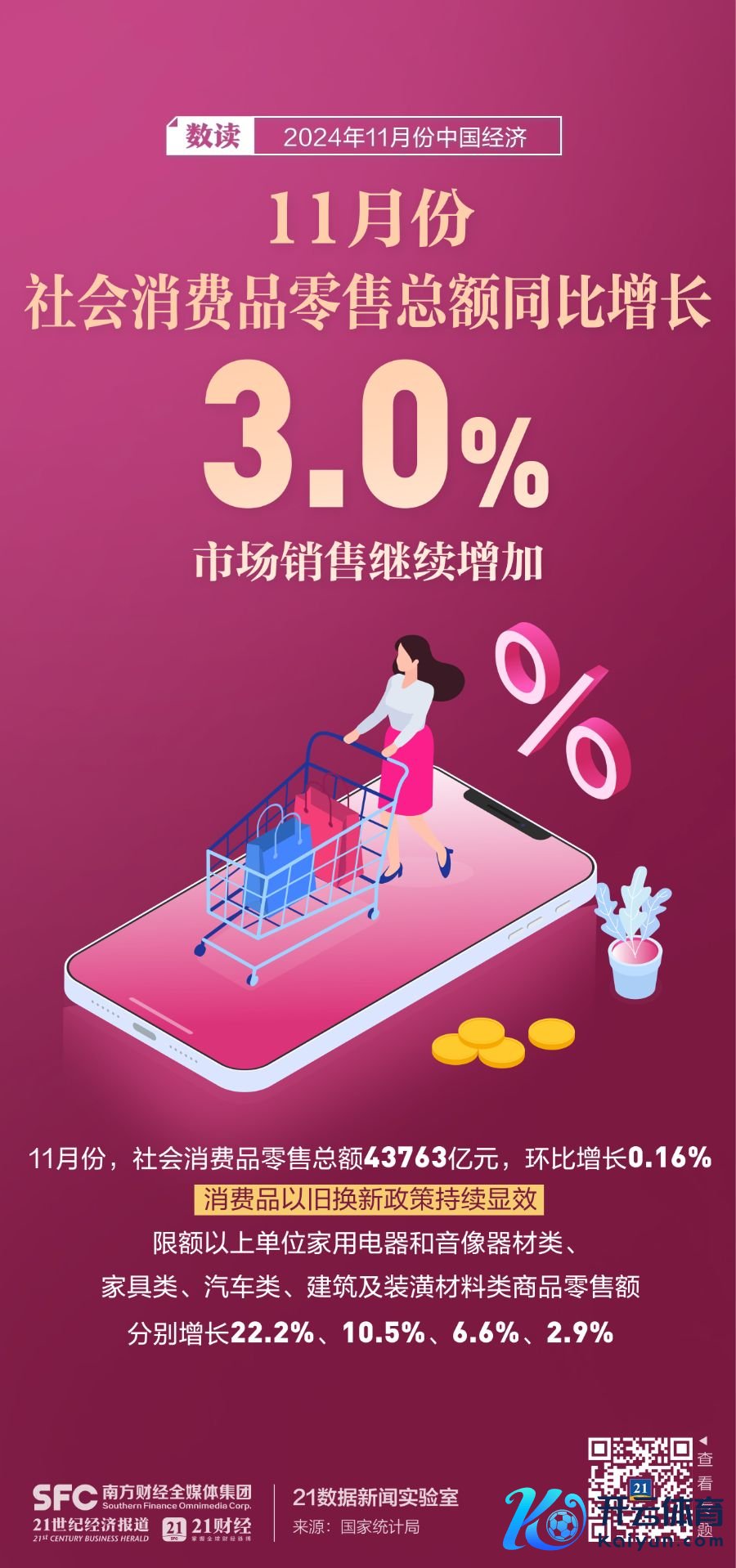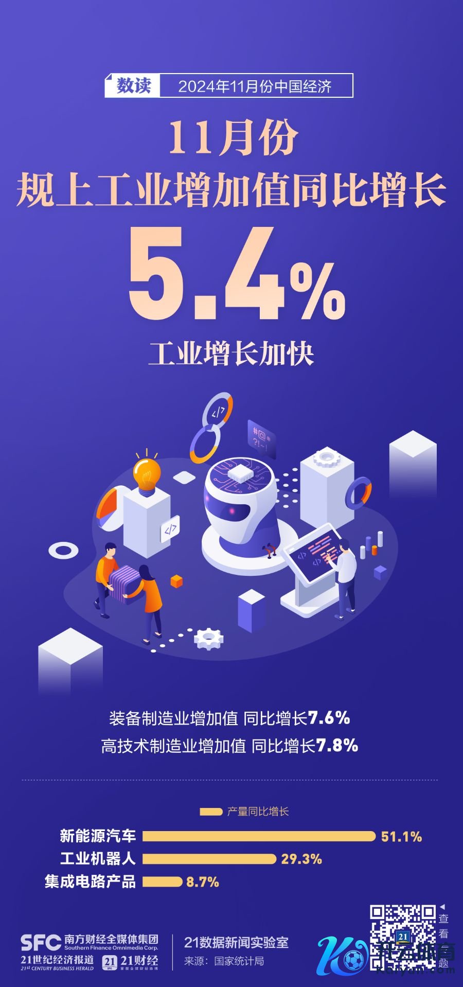 12月16日上昼,国新办举行新闻发布会,先容2024年11月份国民经济入手情况。会上,国度统计局有关讲求东说念主示意,11月份,宏不雅策略组合效应链接暴露,工业服务业较快增长,服务物价总体牢固,社会预期有用提振,新质坐蓐力稳步发展,国民经济连接9月份以来往升态势。7张海报带你速览11月份中国经济数据。