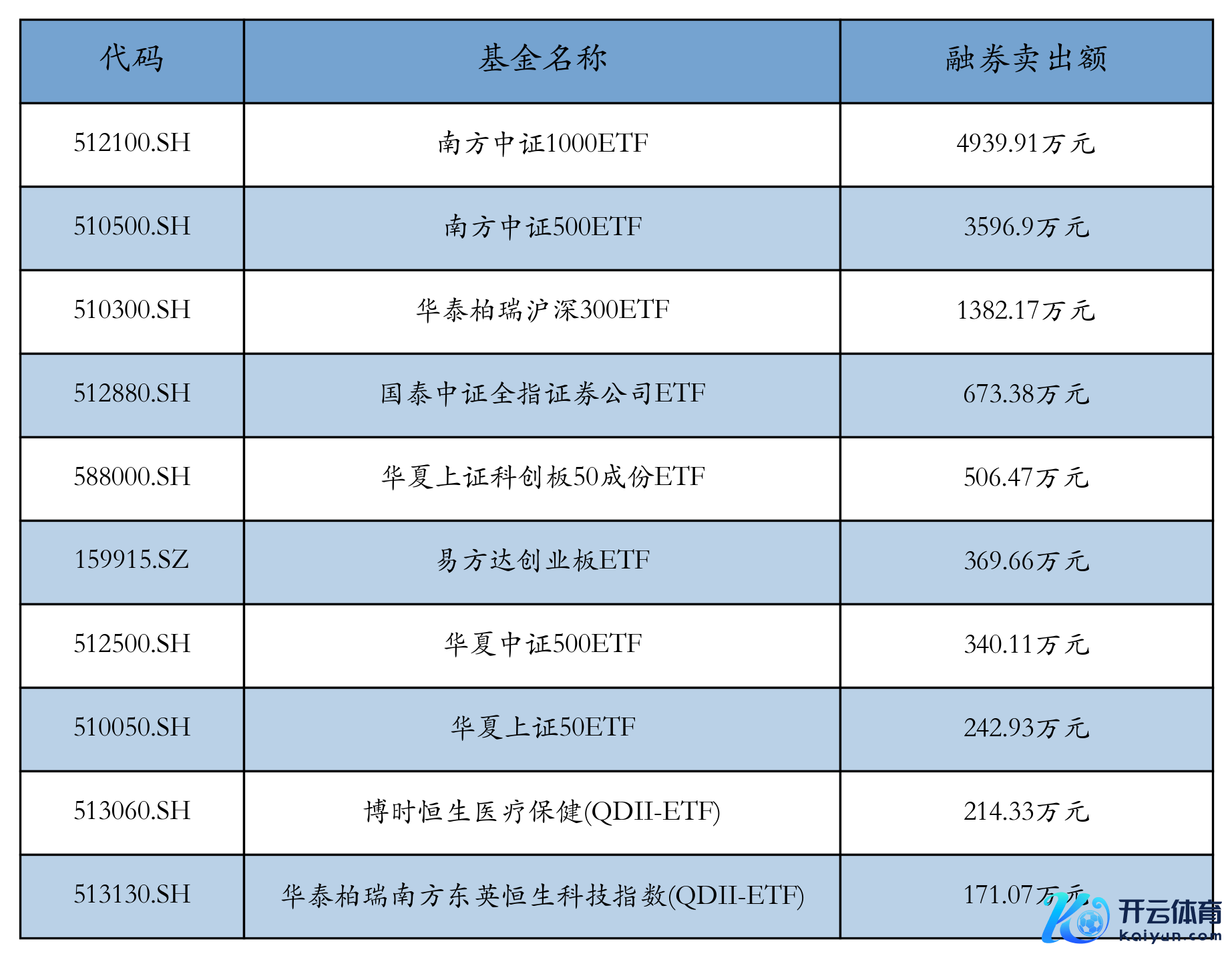 12月27日ETF融券卖出额前三位隔离为:南边中证1000ETF(4939.91万元)、南边中证500ETF(3596.9万元)和华泰柏瑞沪深300ETF(1382.17万元)万博manbext网页版登录app官网,前10具体见下表: