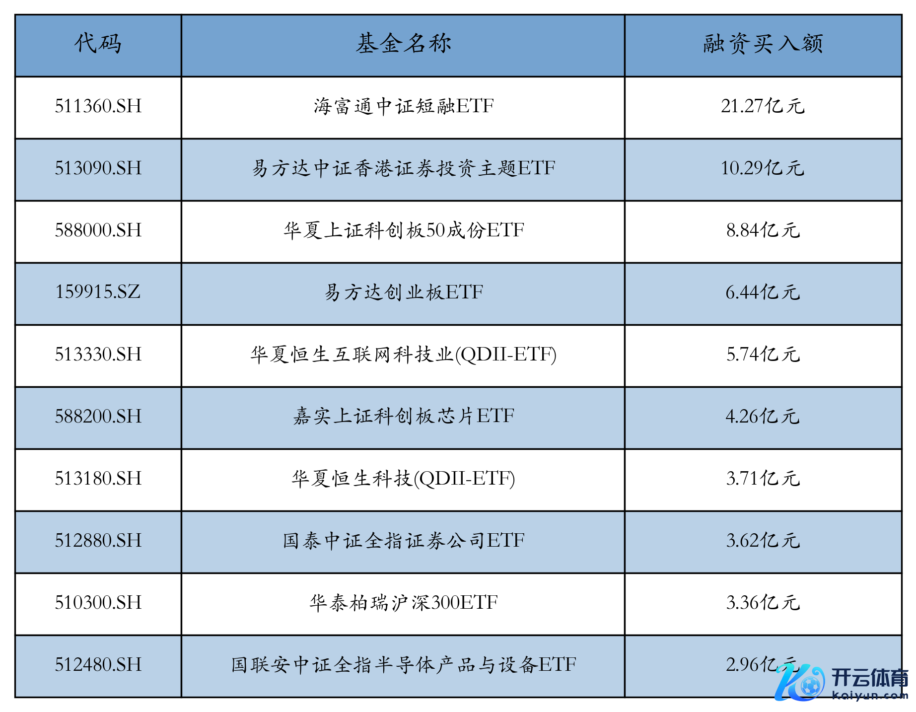 12月27日ETF融资买入额前三位隔离为:海富通中证短融ETF(21.27亿元)、易方达中证香港证券投资主题ETF(10.29亿元)和中原上证科创板50成份ETF(8.84亿元),前10具体见下表: