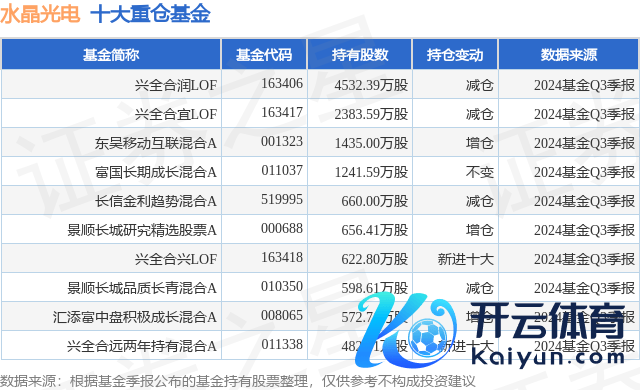 重仓水晶光电的前十大公募基金请见下表: