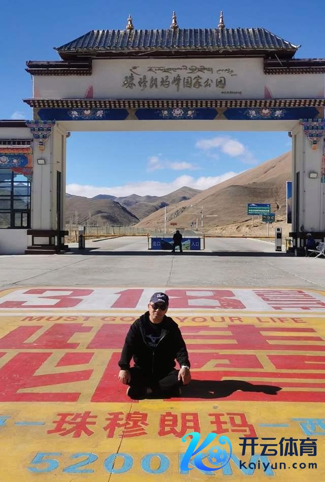 战友郭浩退休后重走川藏线,在珠穆朗玛峰国度公园留影