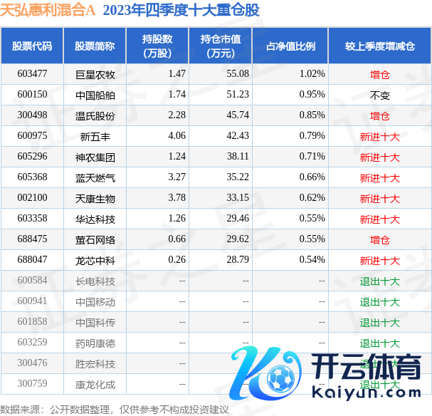 天弘惠利夹杂A为夹杂型-纯真基金,凭证最新一期基金季报透露,该基金金钱成立:无股票类金钱,债券占净值比13.68%,现款占净值比86.72%。基金十大重仓股如下: