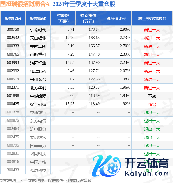 国投瑞银招财搀和A为搀和型-活泼基金,字据最新一期基金季报暴露,该基金钞票建立:股票占净值比77.86%,债券占净值比2.38%,现款占净值比22.78%。基金十大重仓股如下: