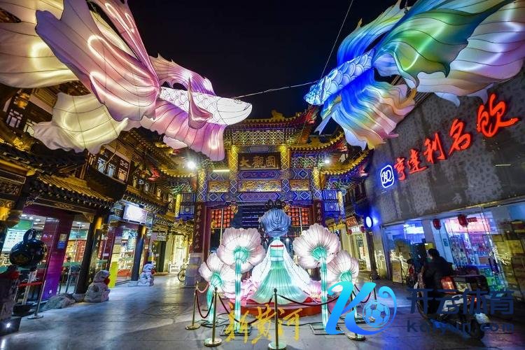 1月22日,腊月二十三农历小年,济南市区多个公园和商圈的花灯提前点亮,营造出浓郁的喜庆敌视。