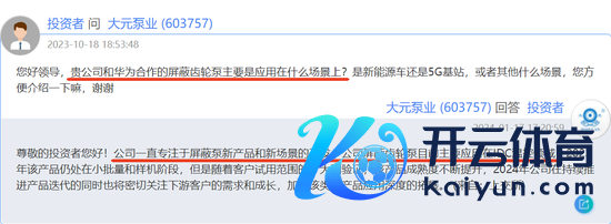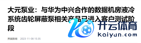 2023年11月8日,大元泵业(603757)在功绩证明会上默示,公司与华为、中兴合营的数据机房液冷系统齿轮屏蔽泵关联居品已进入客户测试阶段,除此以外,公司该类型居品已在其他客户有小批量订单。