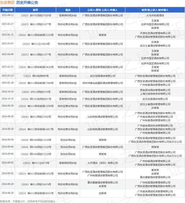 本站音问万博manbext网页版登录app官网,凭据天眼查APP泄漏,近日公布了一则广西东呈旅店科罚集团股份有限公司看成原告/上诉东谈主的开庭公告,夺目实质如下: