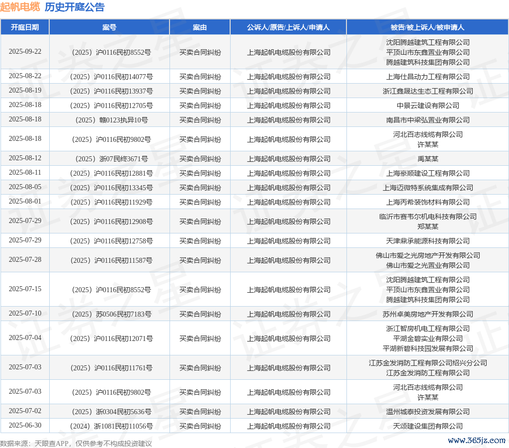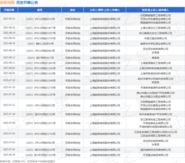本站讯息,字据天眼查APP涌现,近日公布了一则上海起帆电缆股份有限公司行动原告/上诉东谈主的开庭公告,详备本色如下: