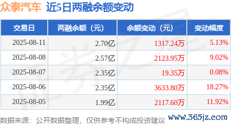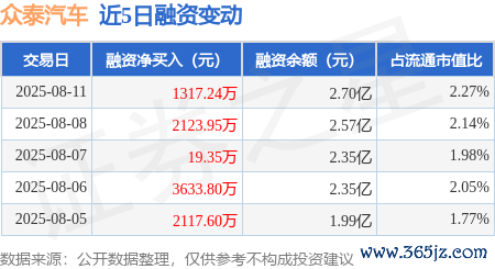 本站音问,8月11日,众泰汽车(000980)融资买入3897.21万元,融资偿还2579.97万元,融资净买入1317.24万元万博manbext网页版登录娱乐网,融资余额2.7亿元,近3个交以前已邻接净买入累计3460.53万元。